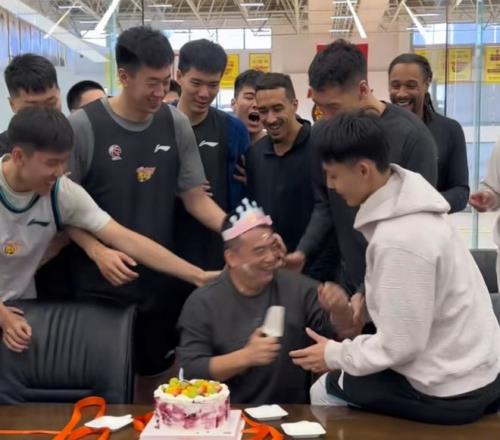 凝聚力拉满!广东为林医生庆生!杜锋讲话致敬,球员砸蛋糕未果!